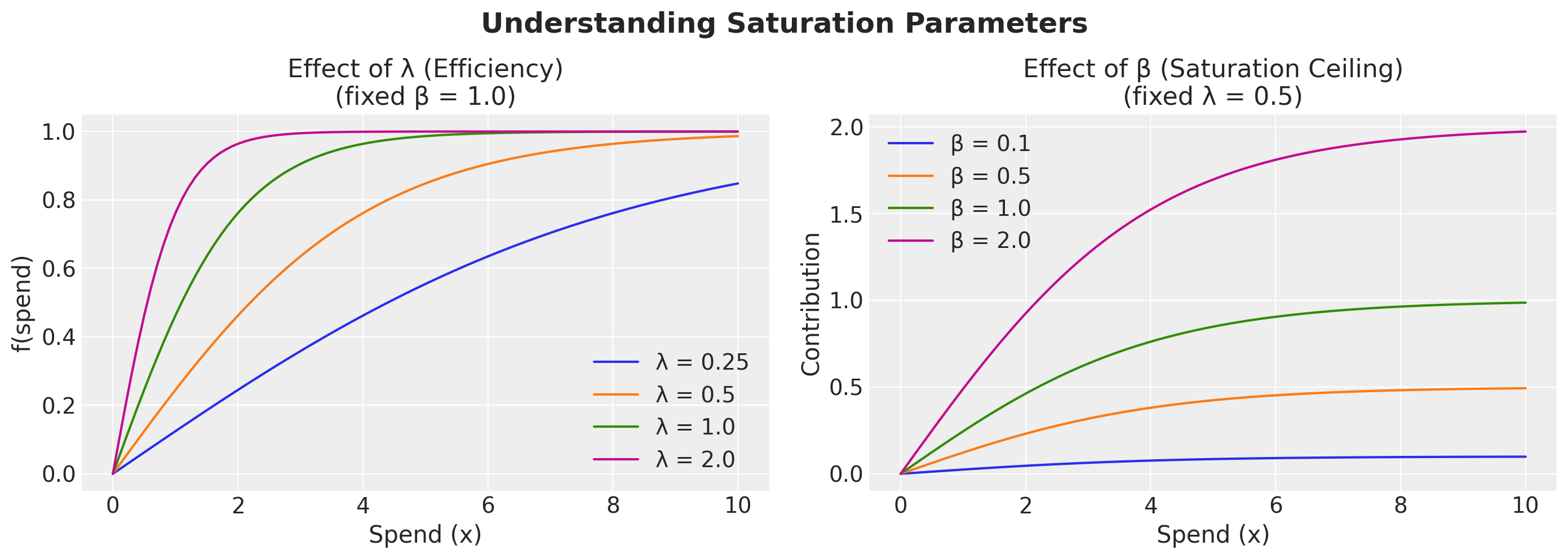 In this tutorial, we explored two complementary ways to visualize media saturation in Marketing Mix Models: